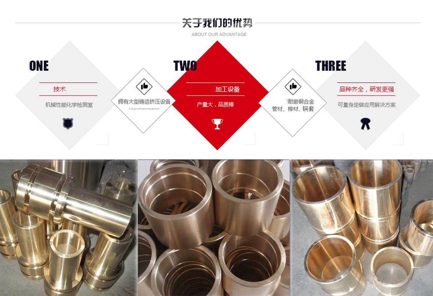 河間市銅套制品有限公司的生產設備精良,擁有40臺國內外先進設備;工藝水平先進,擁有砂型鑄造,金屬鑄造,離心鑄造等技術;是專業研究,開發自制的金屬制品企業。公司坐落于滄州市河間市束城鎮,是國務院確定的經濟開發區,地處北方重要陸海交通樞紐,交通十分便捷,且位鄰米各莊物流園,物流十分快捷,全國各地達到48小時內到貨?! ≈饕洜I:公司主要生產銅套,自潤滑銅套,儀器配件等,如銅軸套、銅滑板、銅瓦、銅蝸輪、銅滑塊、石墨軸承、石墨滑板、汽車配件,儀表,絲杠,法蘭,沖壓件,儀器零件,國標,非標,各種規格各種材質的金屬制品?! ‘a品應用領域:工程機械 水利機械 礦山設備 液壓設備 鍛造設備 化工設備 紡織設備 冶金行業 機械 重工輕工等諸多領域。  主要合作單位:首都鋼鐵集團 ,河北鋼鐵集團 ,唐山鋼鐵集團 ,承德鋼鐵集團, 北京普析, 天津塞特?! 〕S貌馁|介紹:錫青銅:以錫為主要合金元素的銅基合金稱錫青銅,錫青銅在造船、化工、機械、儀表等工業中廣泛應用,主要用以制造軸承、軸套等耐磨零件和彈簧等彈性組件以及抗蝕、抗磁零件等,有高的強度、彈性、耐磨性和抗磁性,在熱態和冷態下壓力加工性良好,對電火花有較高的抗燃性,可焊接和纖焊,可加工性好,主要牌號有ZCuSn6Zn6Pb3,ZCuSn10Pb5,ZCuSn...